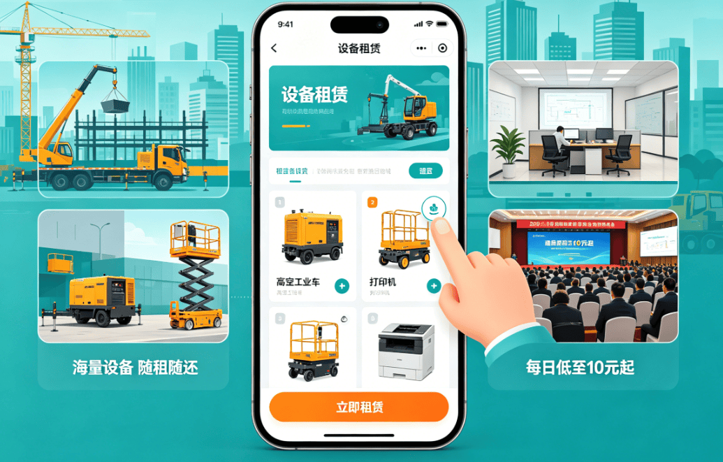 办公设备:打印机、复印机、投影仪、会议平板。一台高速复印机售价过万,中小企业按月租赁,每月仅需几百元,还包含维修保养。续租率极高。 工程设备:挖掘机、升降机、发电机、脚手架。工地工期短、设备闲置成本高,按周/按月租赁是行业标配。小程序可以实现在线选机型、看库存、预付定金。 医疗/康复设备:制氧机、呼吸机、轮椅、护理床。个人家庭临时的康复需求,购买成本高且用后闲置,租赁需求真实且急迫。 活动设备:音响、灯光、舞台架、充气城堡。婚庆公司、活动公司高频使用,小程序支持“档期查询”功能至关重要。真实数据: